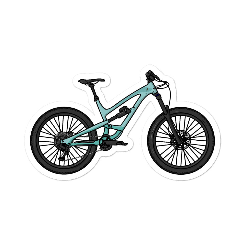 100% hand-drawn mountain bike sticker that matches the real bike. Add some style to your car, truck, or a laptop with this 100% original mountain bike sticker. Hand-drawn illustration of your favorite mountain bike. Perfect sticker for anybody who loves mountain biking or just wants a really cool decal. Great gift for your mountain biking buddy or partner.