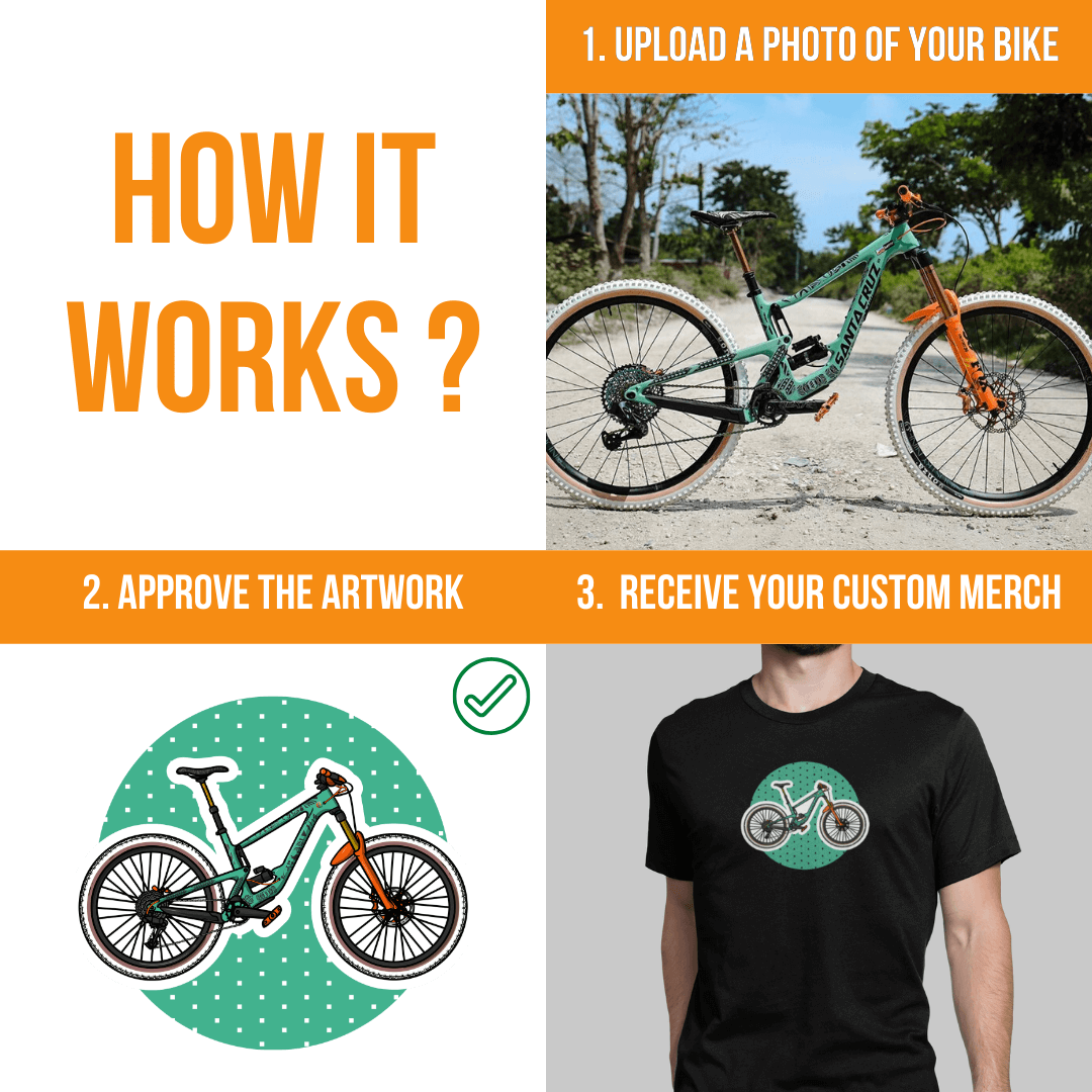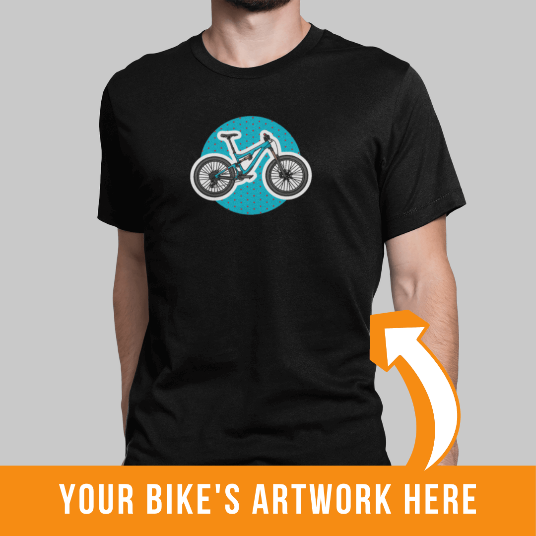 ONE-OF-A-KIND personalized T-Shirt designed by Stand Out Bikes. Why wear a boring standard t-shirt if you can get 100% custom made with your bike's artwork on it. Upload your bike's photo and Stand Out Bikes will take care of the rest. Perfect for those who are truly passionate about biking and love their bikes! Treat yourself with this unique tee or get it as a gift for your cycling or mountain biking buddy or a partner with their bike.