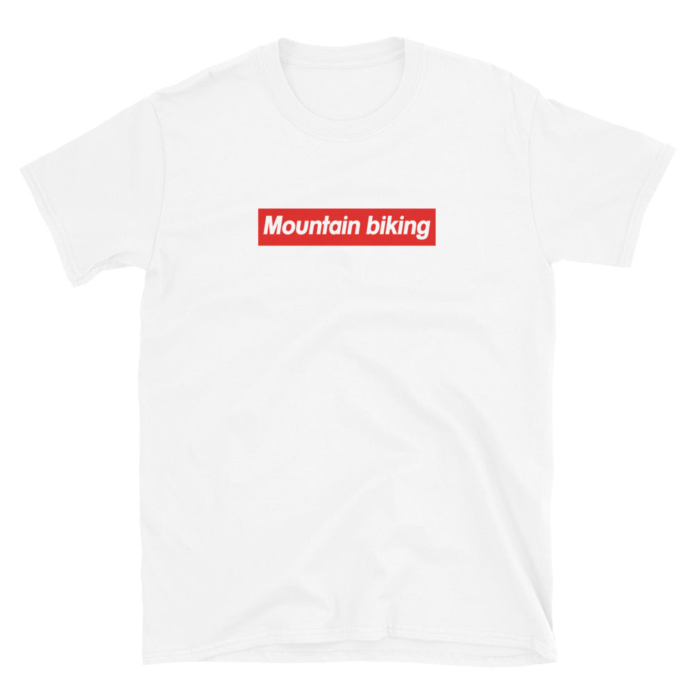 Mountain Biking inspired red box logo t-shirt for true mountain bikers and trail builders. 100% original and hand-drawn design you won't find anywhere else. This shirt will be a great conversation starter at your local trails or a bike park, join the community and treat yourself with this unique tee or get it as a gift for your mountain biking buddy or a partner.