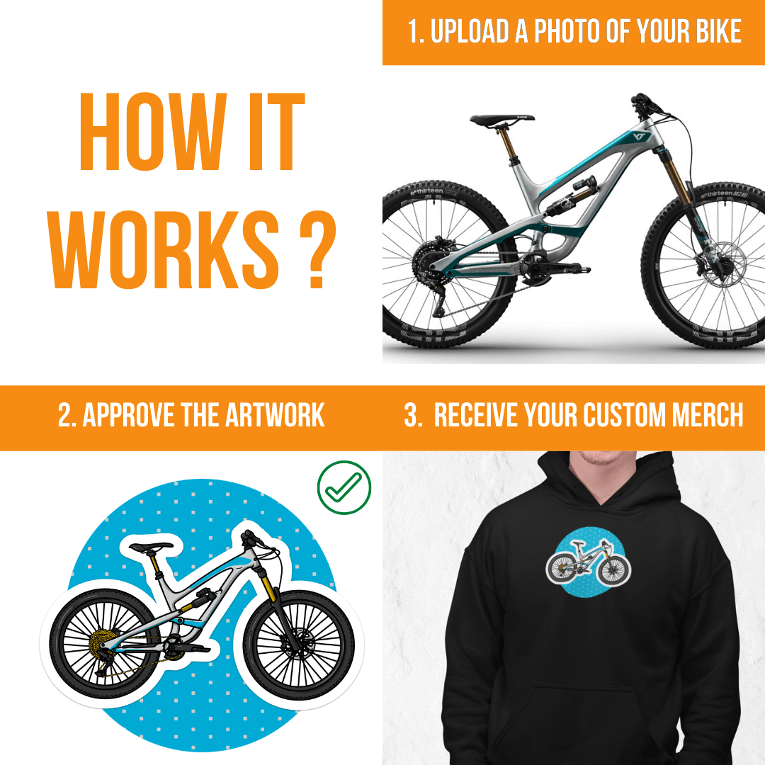 - Approve your art. Your 100% custom hand-drawn bike illustration and design are usually ready in 2-3 days for approval. We will send you an email with your proof.