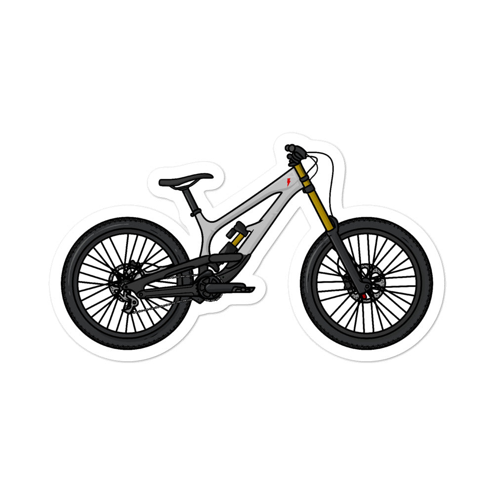100% hand-drawn mountain bike sticker that matches the real bike. Add some style to your car, truck, or a laptop with this 100% original mountain bike sticker. Hand-drawn illustration of your favorite mountain bike. Perfect sticker for anybody who loves mountain biking or just wants a really cool decal. Great gift for your mountain biking buddy or partner.